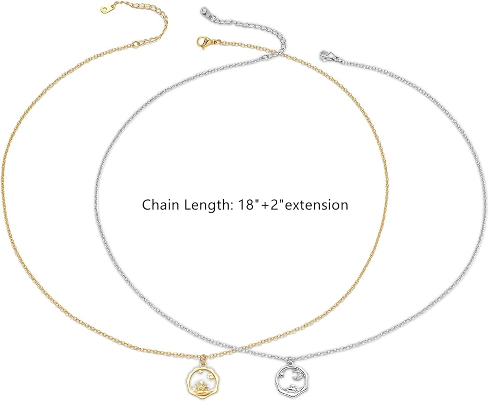 Size:The maximum size of the sun and moon pendant is 0.38 inches, necklace length is 18"+2"extension.