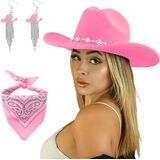 Elevate your style with the JIANGLAI Cowboy Hat – an adjustable cowgirl hat designed for both women and men. The black cowboy hat is complemented by Cowgirl Tassels Earrings and bandana, adding a touch of Western charm to your look. With its adjustable interior band, the womens cowboy hat ensures a comfortable fit, while the layered necklace with its Western-themed charms adds an alluring element. The upgraded felt fabric provides a soft and durable texture, while the vintage appearance adds a classic touch. The JIANGLAI Felt Cowboy Hat is perfect for outdoor activities like horseback riding, ranching, hiking, and camping. It can also be effortlessly styled for special occasions and parties. Whether you're attending a wedding, rodeo, country music concerts or other western-themed events, these western hats are sure to turn heads and make a statement. Embrace the Western spirit with this versatile and stylish hat and necklace set. Choose JIANGLAI for your cowboy hat needs and embrace the perfect blend of functionality and style. Get your JIANGLAI Cowboy Hat today and make a statement wherever you go!