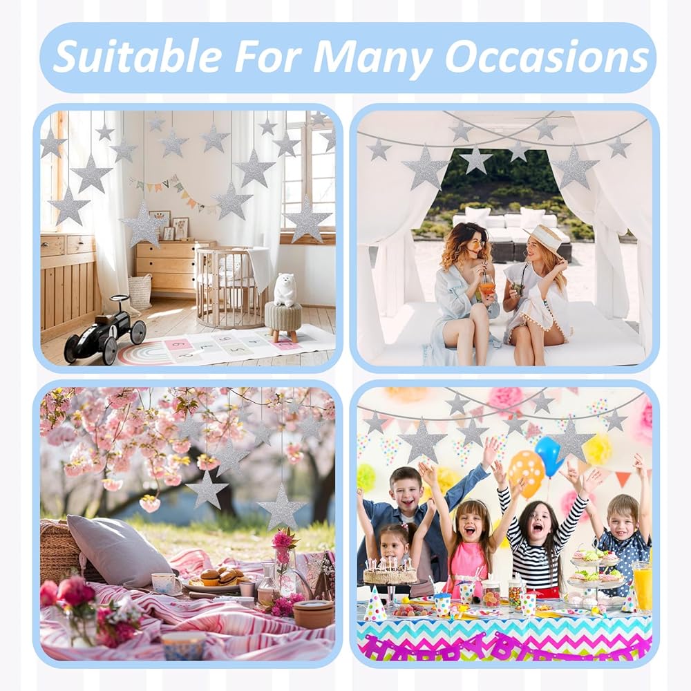 【Punched Stars Easy to Use】Each of our hanging stars star cutouts has a small hole, you can thread the nylon rope through it and hang it anywhere you want