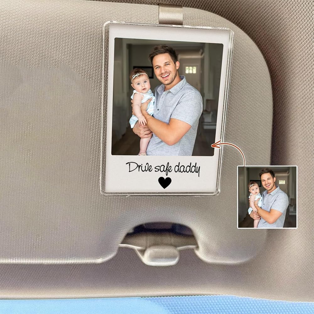 Thoughtful Car Accessory Gift for Dad – This personalized car photo frame makes a meaningful reminder for fathers to drive safely, perfect for new dads, husbands, or first-time fathers.