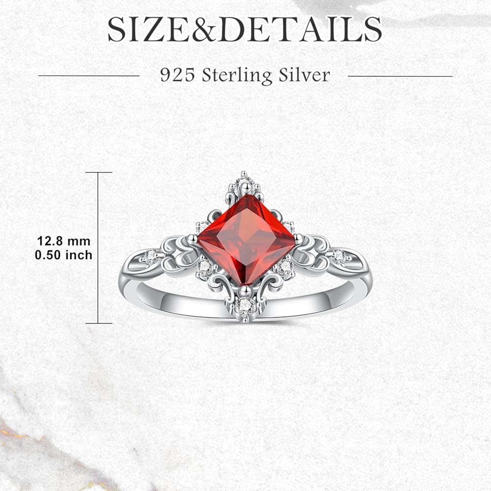 ✨MEASUREMENT✨ Garnet size: 5.5mm princess cut. The ring size: size 6, 7, 8. Make a statement with this timeless and elegant garnet ring.