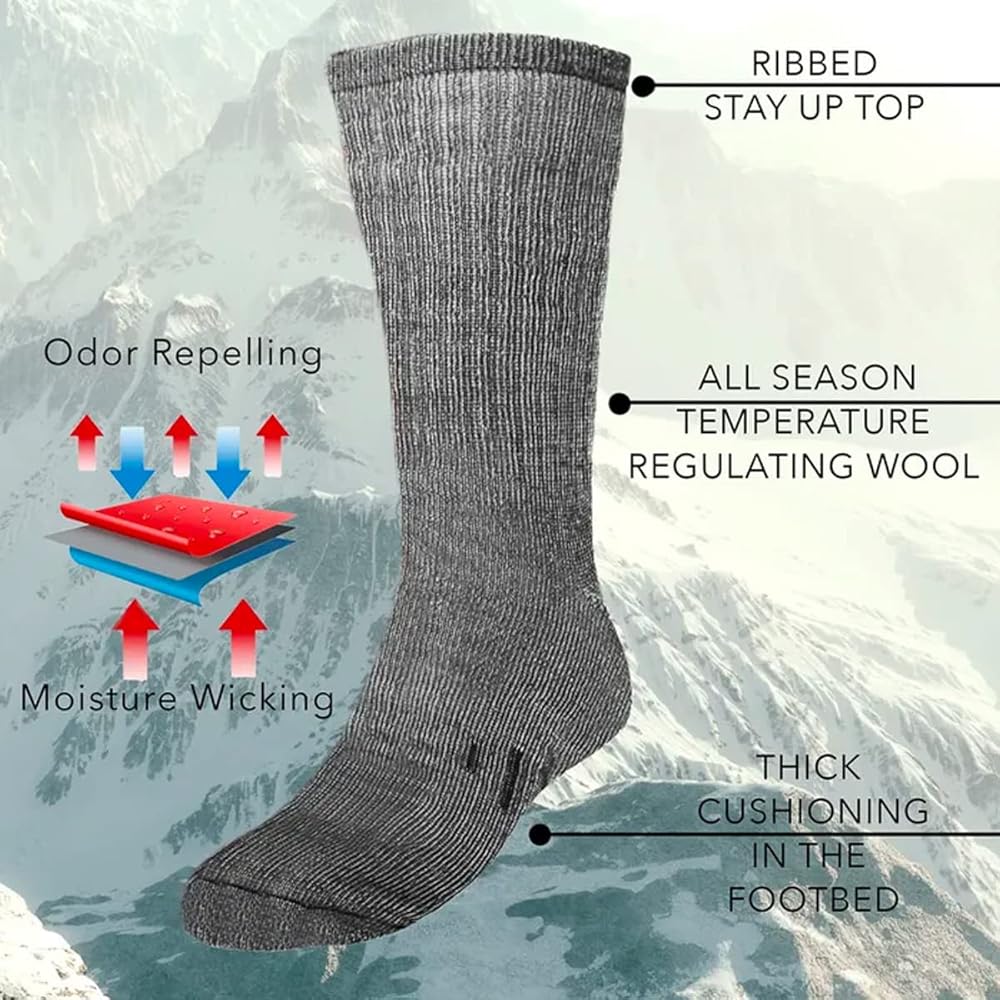 Designed for Extreme Temperatures: For optimal level warmth, these are very warm winter socks for women and men. Merino wool acts as a body temperature regulator and keeps you warm when it's cold and cool when it's hot. Made with 80% Merino wool, these wool socks for men and women are a versatile year-round outdoor accessory for all climates and activities. The perfect addition to your hiking gear or use them as ski socks in your set of thermals, these are hiking socks women and men will love!