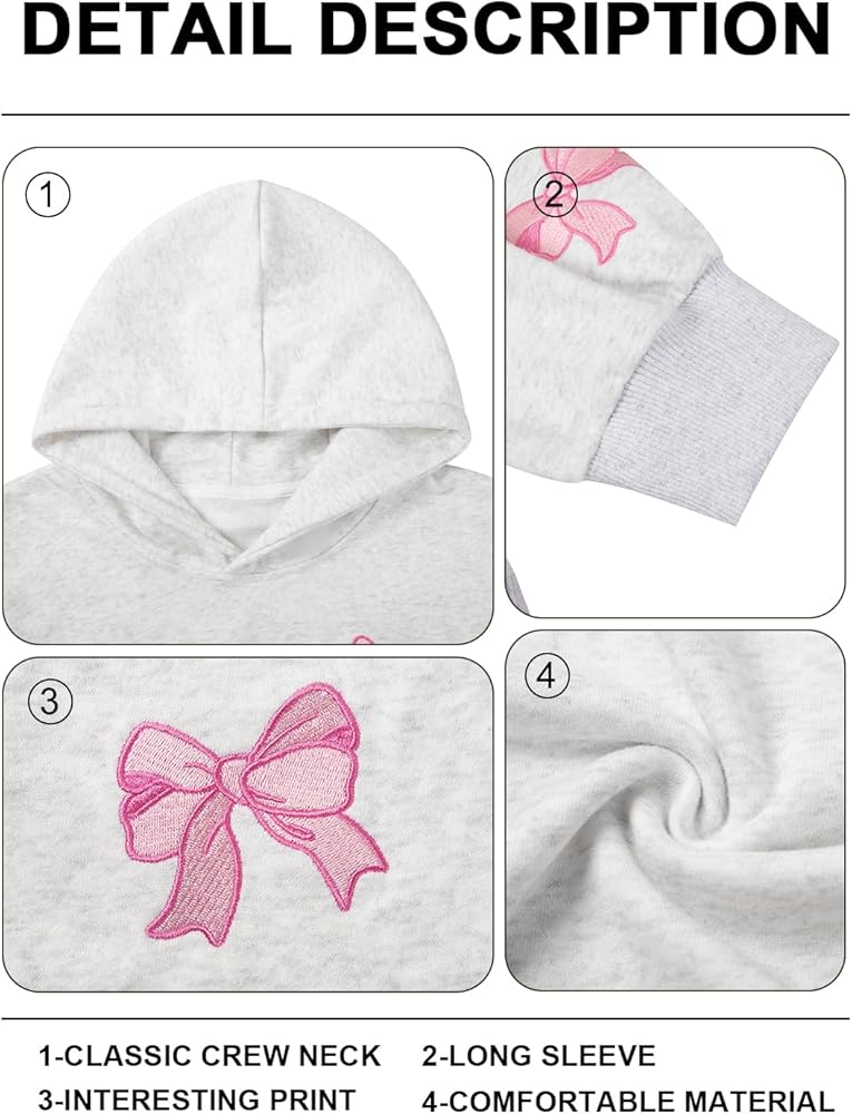Gift: Our oversized bow hoodie woman is an ideal gift for your choose. This trendy hoodies is great gift for yourself or send it to your best friends, your mom, wife, daughter, girlfriend, etc. Elegant embroidery enhances the cute aesthetic, making this sweatshirt a standout piece in your wardrobe.