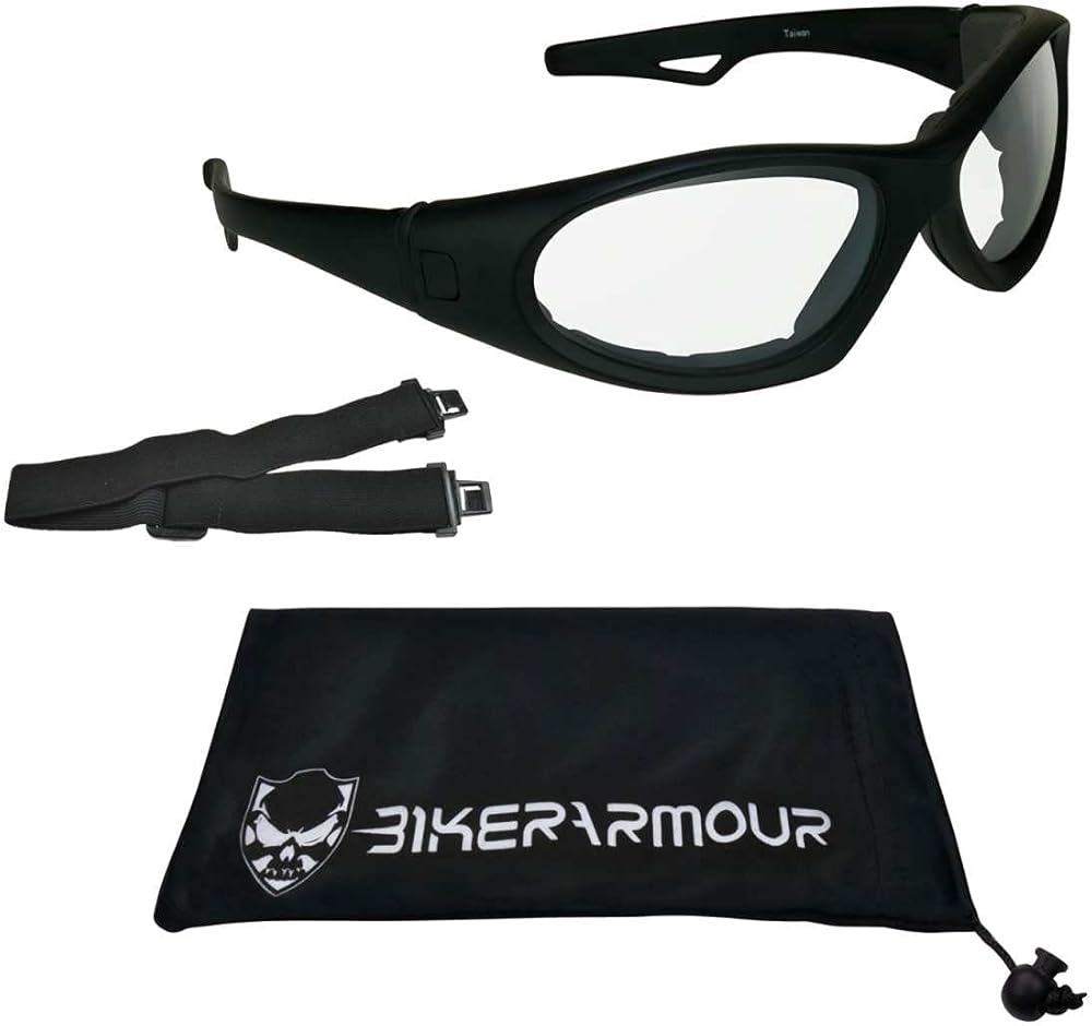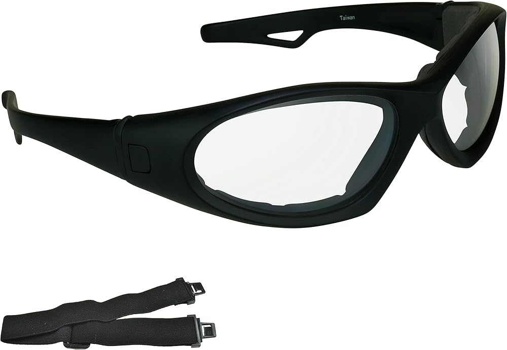 FOAM PADDED PROTECTION: Sweatproof foam cushion protects your eyes from wind, dust, and debris while you are riding your motorcycle. Also great for skiing, working in harsh conditions or even mowing the lawn. Foam Cushion keeps your glasses snug around your face so they won't fly off or wiggle at high speeds.
