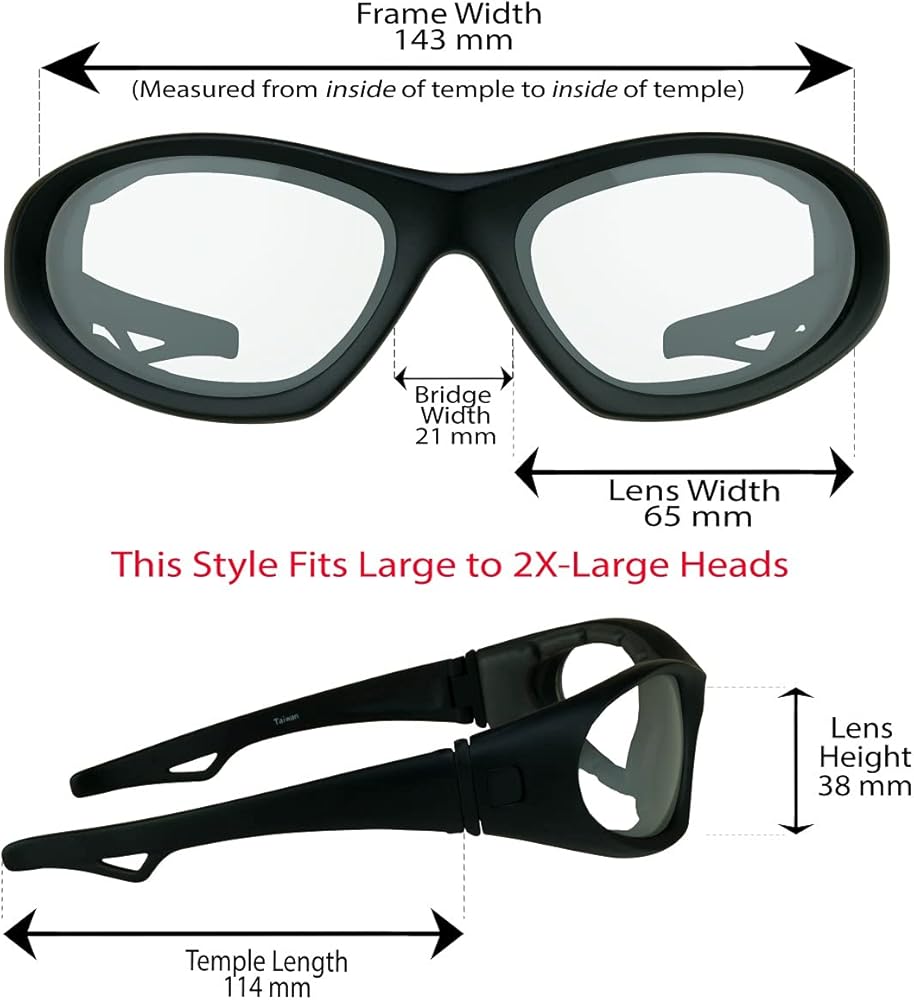 If you're having a hard time finding wide fit motorcycle sunglass goggles for big head sizes, look no further - the Down Force foam padded motorcycle sunglasses are the perfect pair for you!