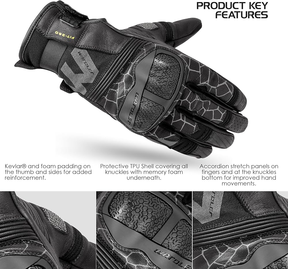 Enhanced Mobility & Flexibility: Accordion stretch panels on fingers and knuckle bases improve dexterity and hand movement for a smoother riding experience.
