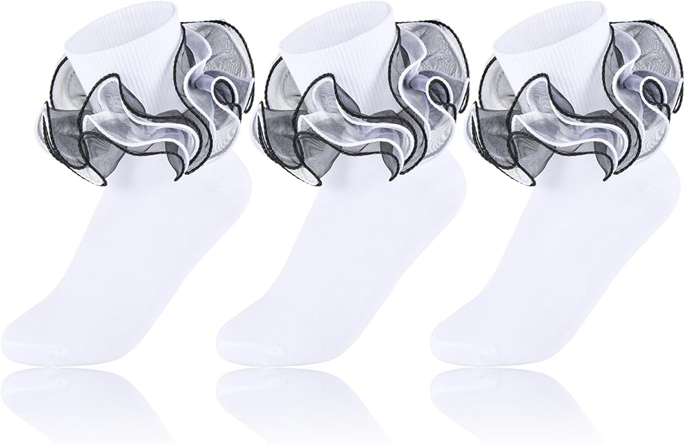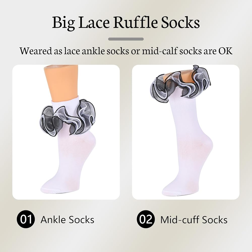 Exquisite Designed: Womens ruffle socks features unique 4-layer organza lace ruffles with a foldover cuff, adding a sophisticated and feminine touch to any outfi