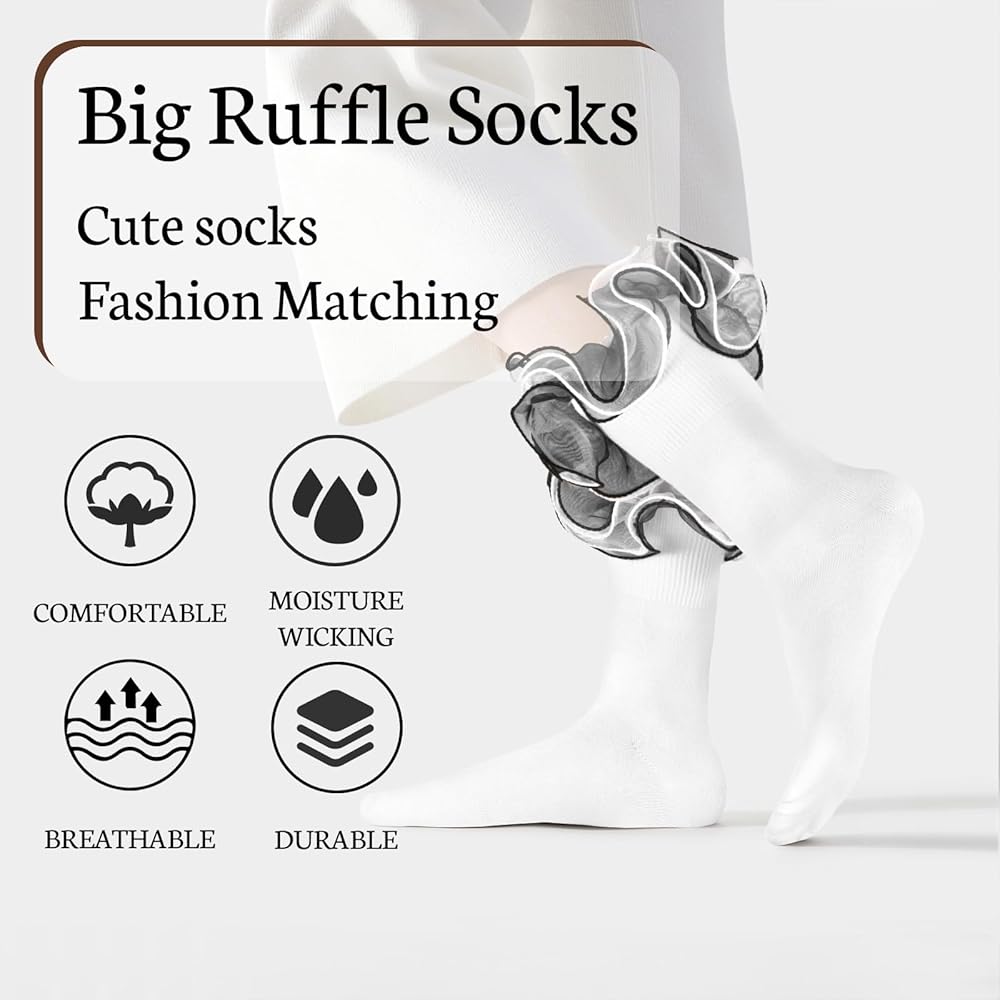 Breathable & Comfortable Material: These Big Ruffle Socks for Women are made from a breathable cotton blend material with polyester and spandex, with good elasticity,soft,breathable and comfortable for a better fit,suitable for all seasons