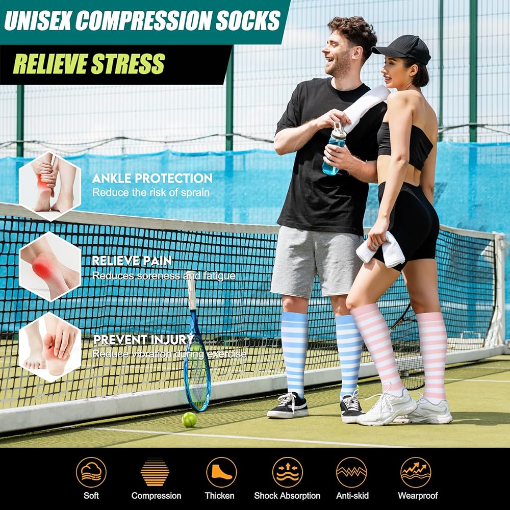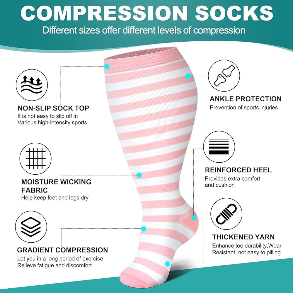 【Breathability, Durability】: Made from premium materials, these socks are designed for maximum comfort and longevity. The breathable fabric keeps your feet and legs cool and dry, even during extended wear. This feature is especially beneficial for active individuals or those who stand for long periods. Additionally, their durable construction ensures they maintain their quality over time, even with frequent use.
