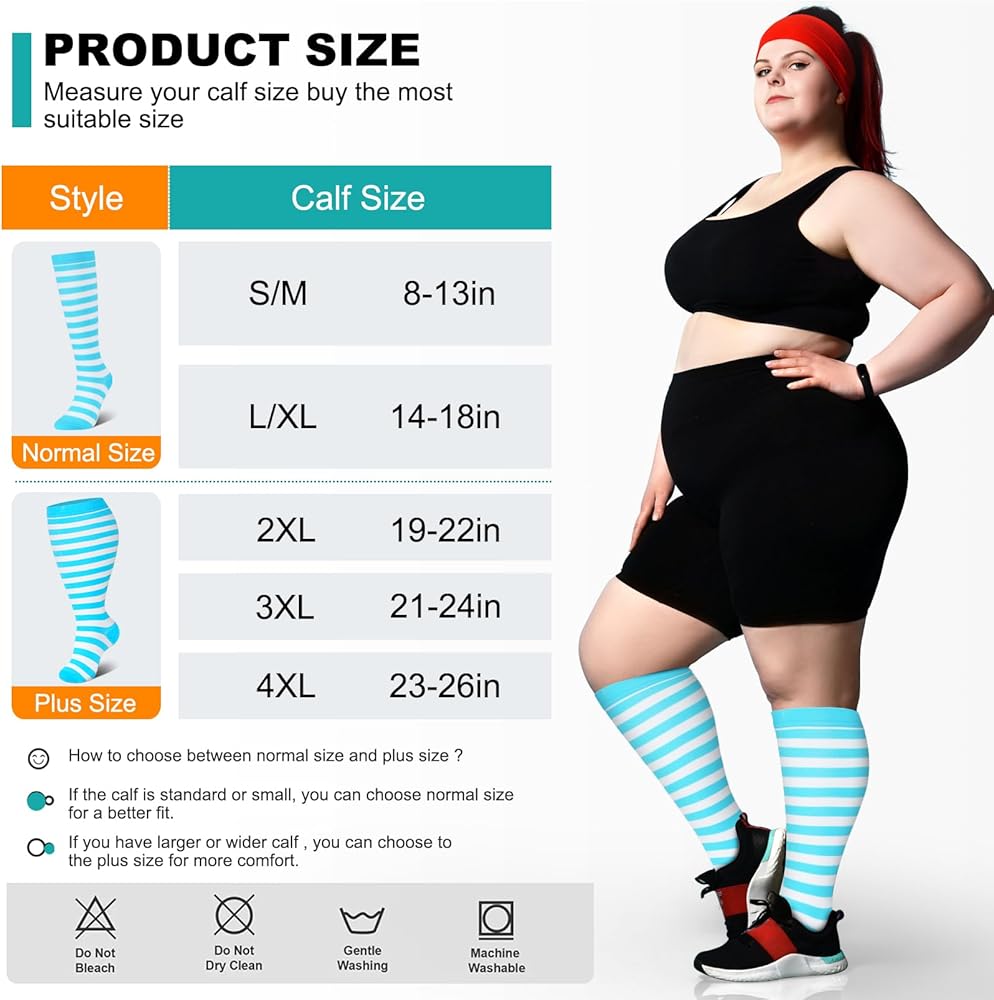 【Diverse Styles & Colors】: Our wide-calf socks come in a variety of styles and colors, ensuring there's something for everyone. Available in sizes from S/M to 4XL, they cater to a wide range of calf circumferences. Whether you prefer athletic or casual styles, our collection lets you express your personal flair while providing essential comfort.