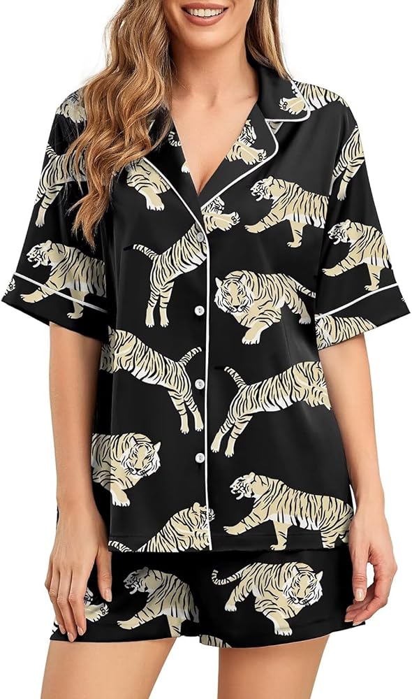 Fashionable Animal Print: Silk pajamas for women showcases a delicate design with tiger prints, exuding a sense of fashion and vitality, allowing you to maintain a stylish look at home or before bedtime.