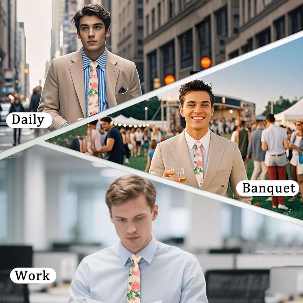 Flower Design: The beautiful floral print of ties for men brings creativity to your look, infusing a touch of vitality; Our floral tie pairs effortlessly with dress shirt or suit, combining formal and casual looks seamlessly