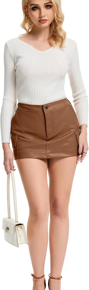 Occasions: This khaki faux leather legging skort is suitable for casual wear, daily life, shopping, holiday, vacation, club, night out, gathering and outgoing.