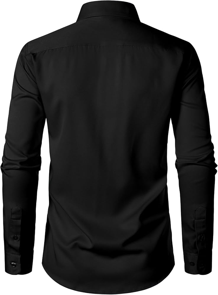 Stretch Fabric:This long sleeve dress shirts is made of stretch fabric,its soft and offers a perfect blend of comfort and style. Polyester spandex blend fabric has excellent stability and the fine texture keeps you looking crisp all day. For easy careIt is advised to perform light ironing before the first wear to help maintain the shirt's shape over time
