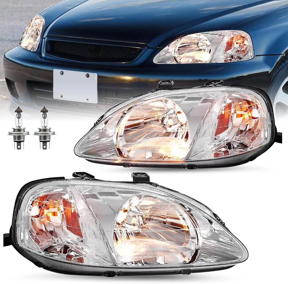 【VEHICLE COMPATIBILITY】Headlights Assembly for 1999-2000 Honda Civic. Bulbs are NOT included. High / Low Beam Bulb Type: H4. OEM Part Number: 33101S01A02, 33151S01A02. ABPA Partslink Number: HO2502113, HO2503113.