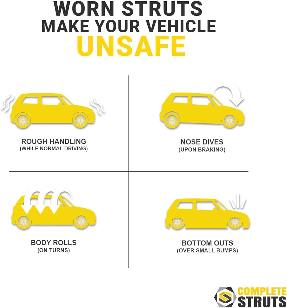 - Kit Includes: (2) Front Complete Strut Assemblies + (2) Rear Complete Strut Assemblies