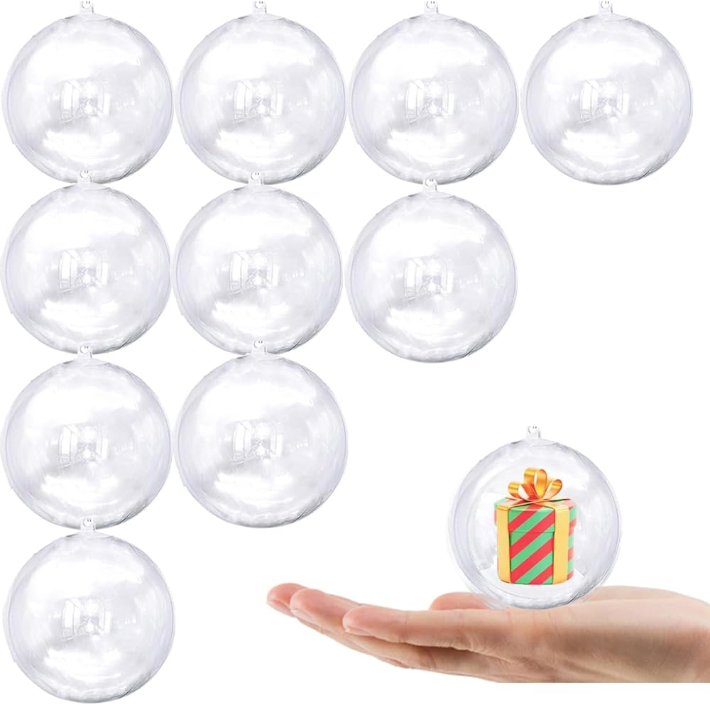 🎄 EASY TO USE - Our Round Clear Ornaments Ball can be separated into two parts in order to open and close them freely, as it equipped with a hook on top to hang easily whatever is inside with a piece of ribbon, twine, rope, Perfect for holiday decorating on Christmas Trees.(Kindly note: There are 2 opposite sides of the ball, that means 10 male semi-sphere and 10 female semi-sphere. Please make sure you pick one male side and one female side, so that you can match a ball),and you will get 10PCS Ball