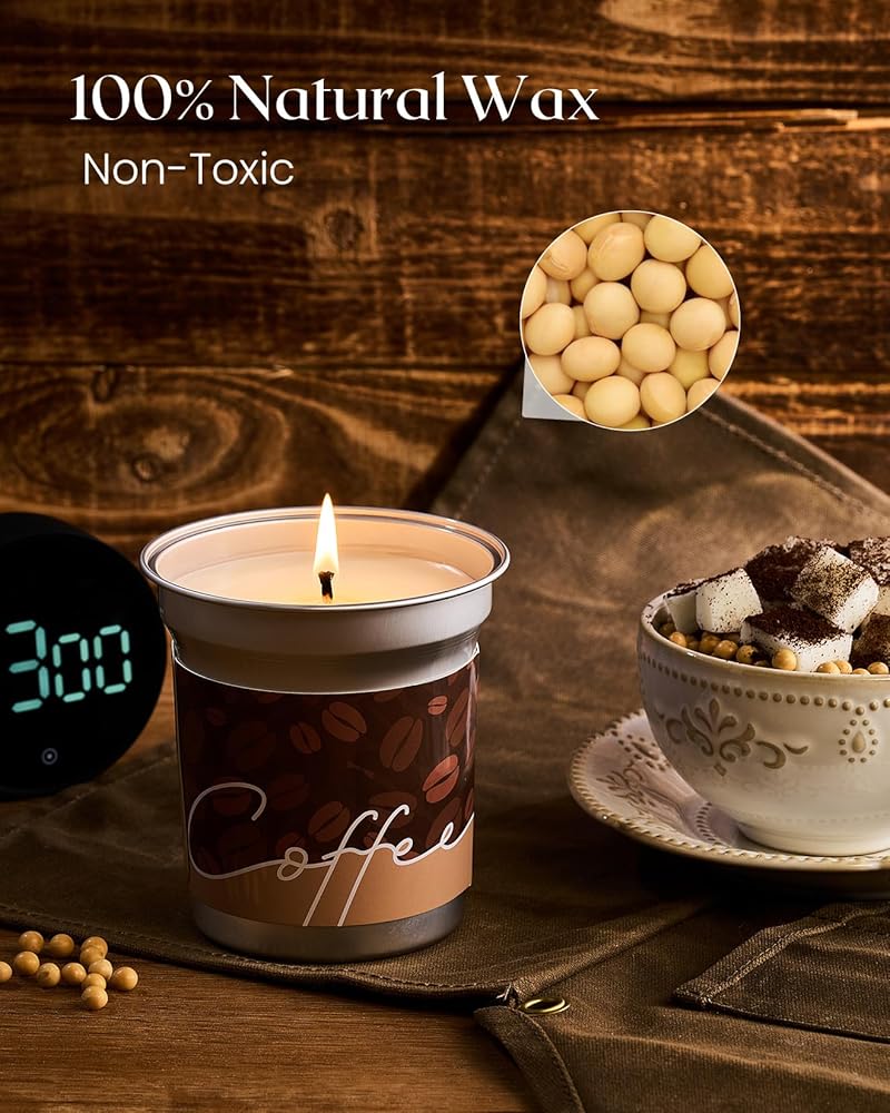 Clean & Eco-Friendly Formula: Made with 100% natural soy candles non toxic wax and lead-free wicks, our candles prioritize safety for families. No soot, no toxins—just pure coffee bliss. Reuse the jar as a pen holder post-burn