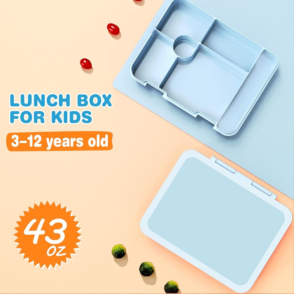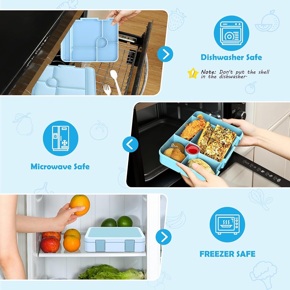 【43OZ BENTO LUNCH BOX】The BPA free ACESAK lunch box kids (43oz/1300ml) features six compartments for diverse meals, ensuring your child's meals are not only delicious but also packed with balanced nutrition. Detachable, dishwasher-safe (Inner tray & silicone seal only), and freezer/ Inner tray microwave-compatible, making it perfect for packing preferred foods like sandwiches, burgers, pasta, fruits, veggies, salads, or desserts in an organized manner.
