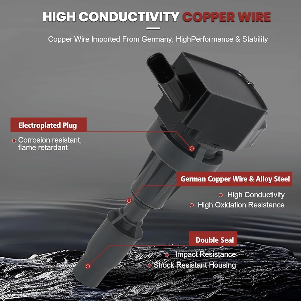 Ignition Coil: German-imported high-purity copper windings, silicon steel core and high temperature resistant epoxy resin and other high quality materials provide efficient power transmission,anti-oxidation and corrosion resistance to ensure stable high voltage output from coil pack,reduce ignition failure. OE number: 27300-2GGA0, UF-764, UF764, 273002GGA0, GN10730, C988, E1264, IC871, 49138