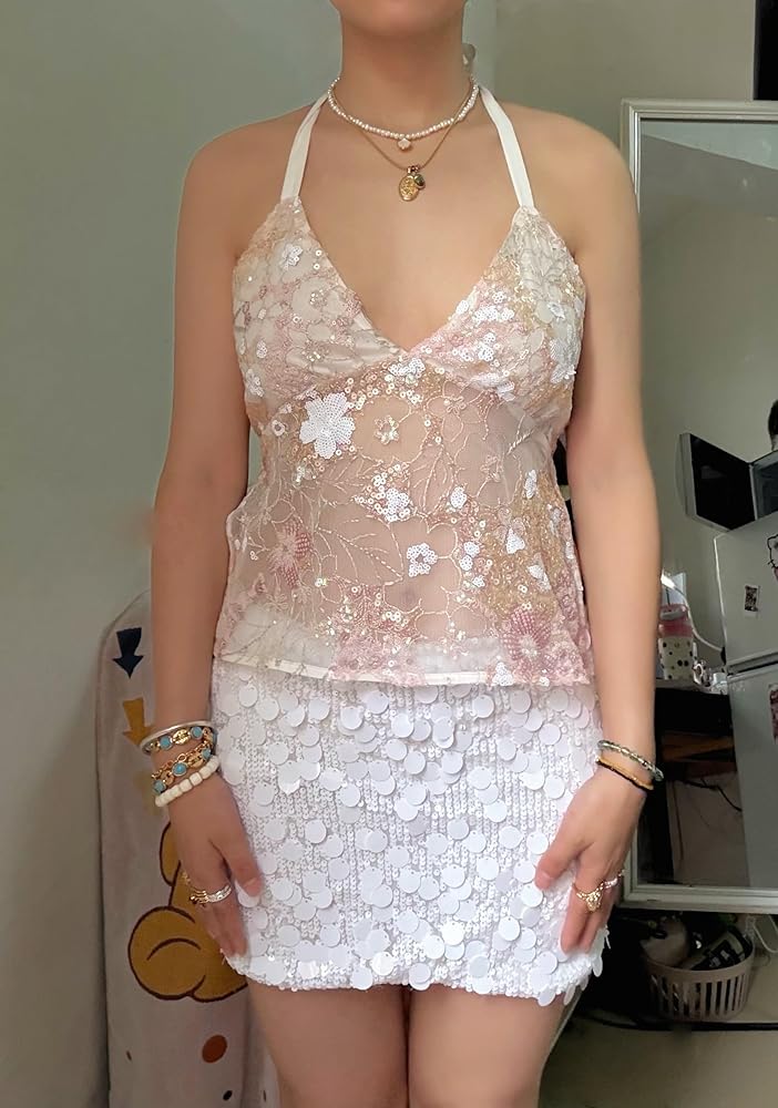 - Style: Halter tops for women, y2k sequin tank tops, backless halter tops, glitter tops, sparkly tank tops, beaded tops, rave tank tops