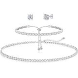 Luxval Tennis Necklace Set for Women Tennis Bracelets Diamond Earrings Sterling Silver Necklace Wedding Jewelry for Bride Silver Jewelry Sets for Women Gift