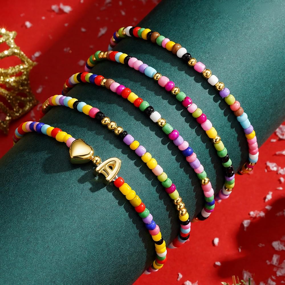 MATERIAL: 14K gold plated heart initial charm, nickel and lead free, Color will last a long time without tarnish. Crafted with high-quality materials, these colorful beaded bracelets are durable and comfortable to wear all day long. The beads are carefully selected to ensure they are lightweight and do not irritate the skin, making them ideal for sensitive wearers