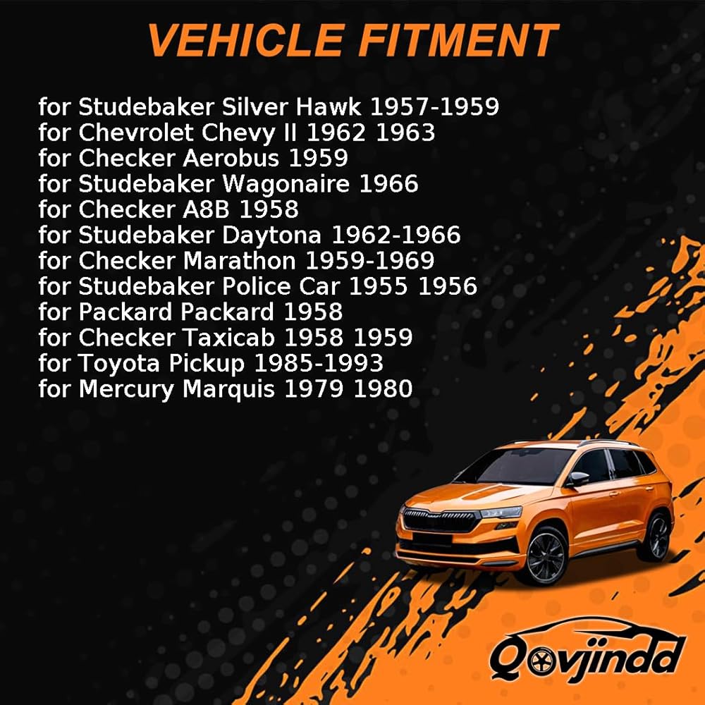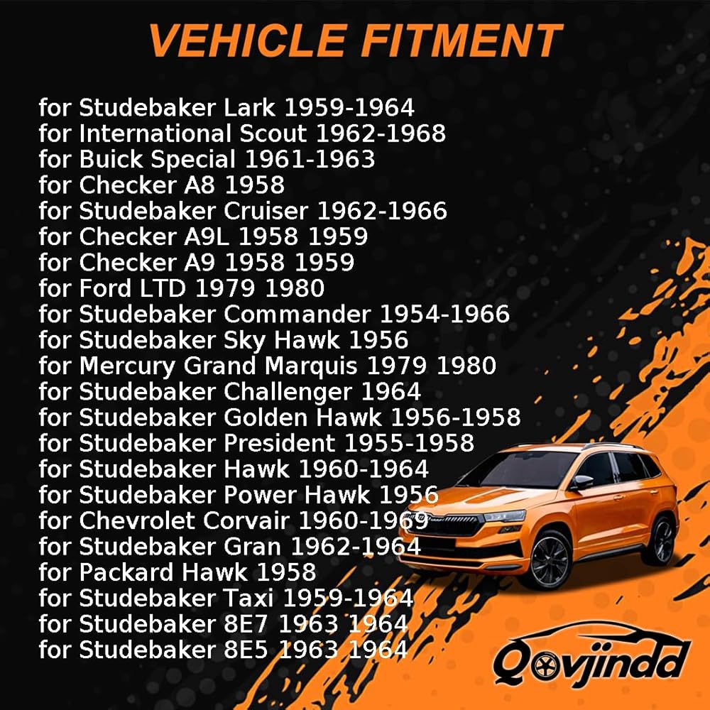 Vehicle Fit: Drum Brake Wheel Cylinder Kit for Buick Special 1961-1963 for Checker A8 1958 for Checker A8B 1958 for Checker A9 1958-1959 for Checker A9L 1958-1959 for Checker Aerobus 1959 for Checker Marathon 1959-1969 for Checker Taxicab 1958-1959 for Chevrolet Chevy II 1962-1963 for Chevrolet Corvair 1960-1969 for Ford LTD 1979-1980 for International Scout 1962-1968 for Mercury Grand Marquis 1979-1980 for Mercury Marquis 1979-1980 for Packard Hawk 1958 for Packard Packard 1958