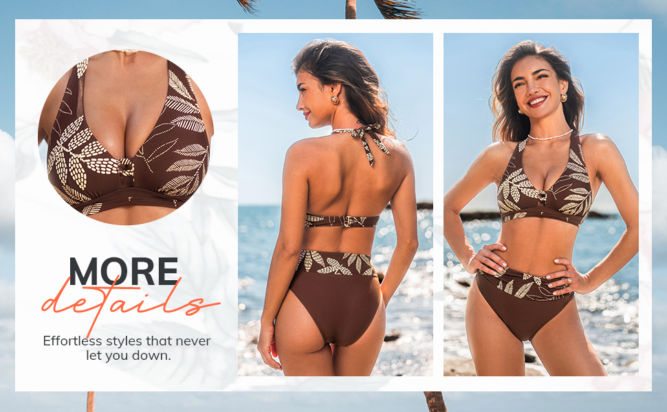 Design: The Women's Fashionable Two Piece Bikini Set Features A Flattering V Neck Halter Design With Sexy Cutout Detailing, High Waisted Bottoms With Ruching , And Secure Back Hook Closure Perfect For Making A Stylish Statement At The Beach Or Pool