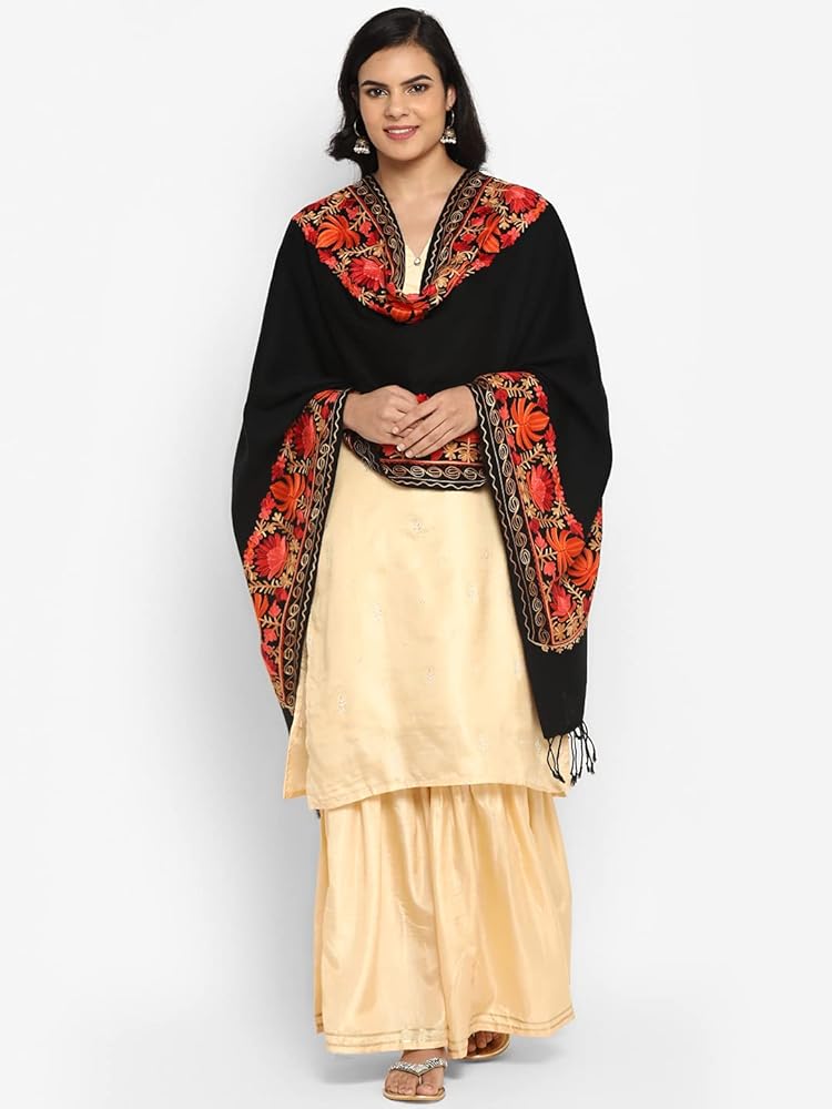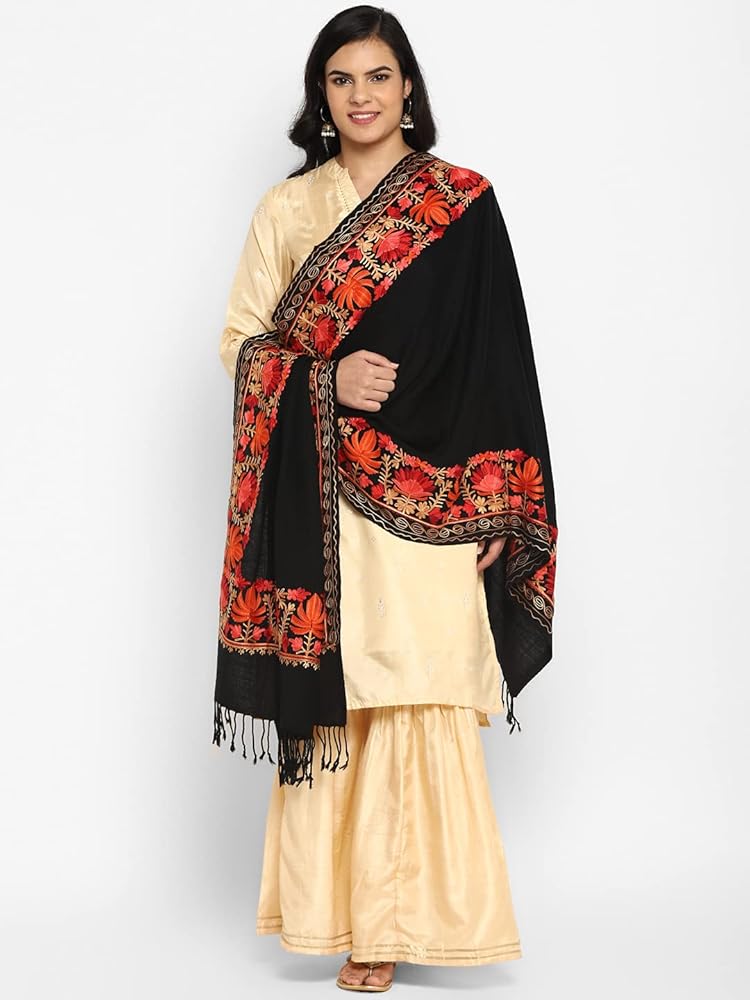 - Mixed Wool, Kashmiri Aari Embroidery Ladies Woollen Stole Blanket with Pakistani touch