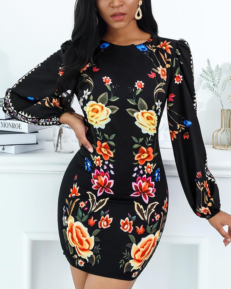Design: Featuring a classic round neckline, chic waist cutout, and long lantern sleeves, this floral dress for women combines elegance with a bold, modern twist. The floral print enhances its feminine appeal, while the bodycon fit accentuates your curves for a flattering silhouette