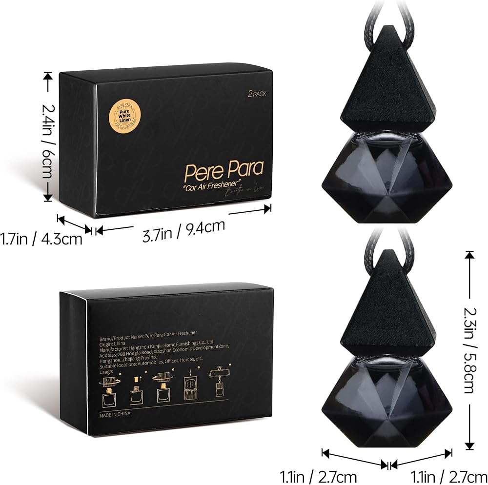 Luxury Perfume Scented Car Air Freshener for Summer - Hanging Essential Oil Diffuser with 90-Day Long-Lasting Fragrance, Non-Toxic & Eco, Premium Gift for Men/Women(Pure white linen Scent, 2 x 8ml)