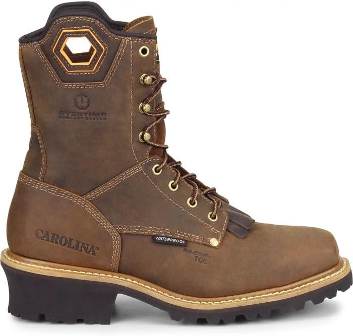 From felling to bucking and limbing, this composite toe waterproof logger will help you do it all with confidence and comfort. It's fortified with a composite safety toe, our Scubaliner and our Overtime comfort system footbed. Features: Crazy Horse Brown Leather Upper, Composite Safety Toe Cap, Waterproof Scubaliner, Mesh Lining, Taibrelle Lined, Oovertime Comfort System Footbed, Removable Kiltie, Electrical Hazard Rated, Leather Welt Construction, Oil & Slip Resisting One Piece Rubber Lug Outsole. At Carolina, our only goal is to provide working people with footwear that is 100% effective. We understand the differences in job requirements. So, we design and build footwear to accommodate those differences, using industry-specific designs and sophisticated construction techniques to combine carefully chosen materials with state-of-the-art, patented technologies.