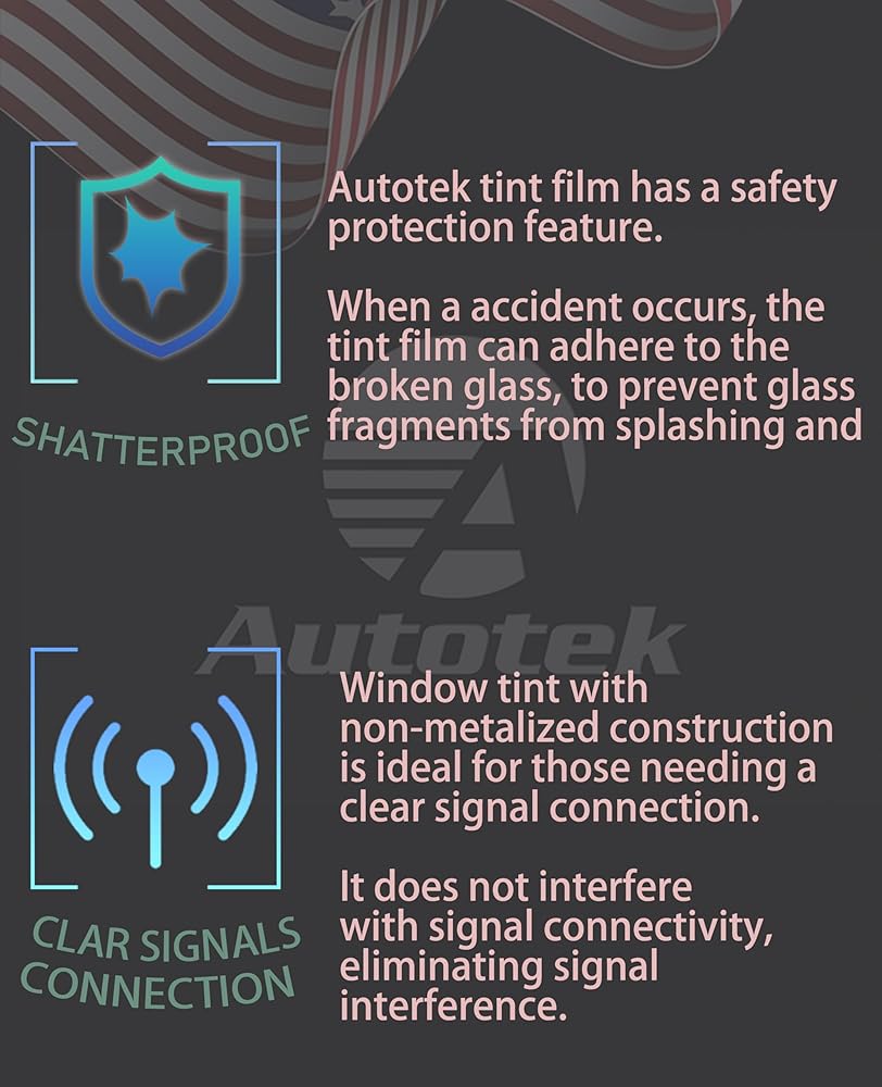 Shatterproof: Autotek tint film provides safety and protection. When glass is broker or an accident occurs, tint film adheres to the broken glass and prevents glass shards hurt people.