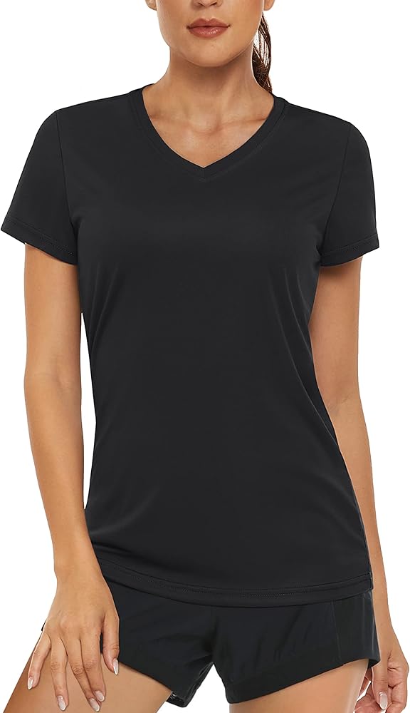 MAGCOMSEN Women's Workout Tops Short Sleeve UPF 50+ Athletic Shirts Quick Dry V-Neck T-Shirt Moisture Wicking Gym Tee