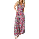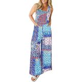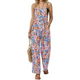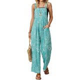 Fashionable Design:Featuring a bohemian-inspired print, this dressy jumpsuit combines dual pockets with adjustable buttoned shoulder straps. Its sleeveless, wide-leg, minimalist silhouette suits every body type, ensuring effortless comfort and style