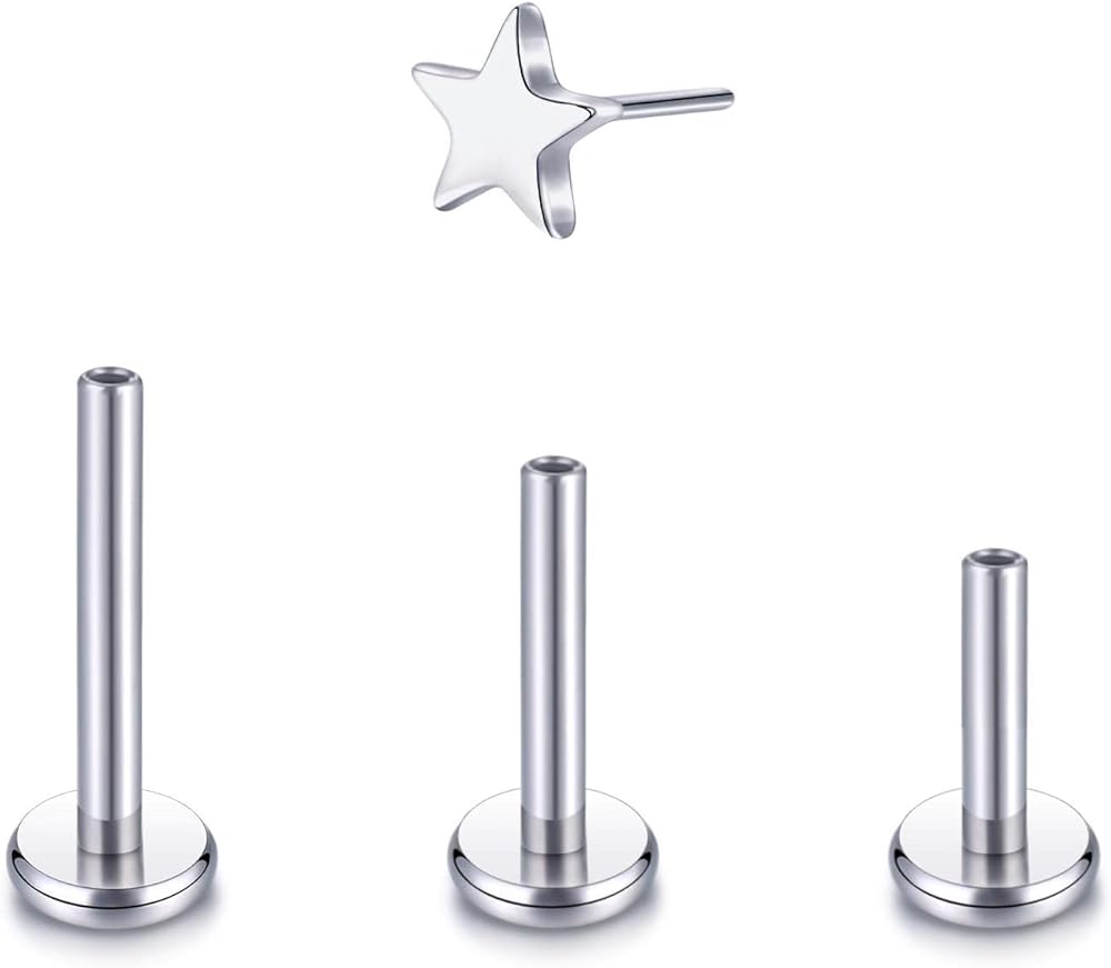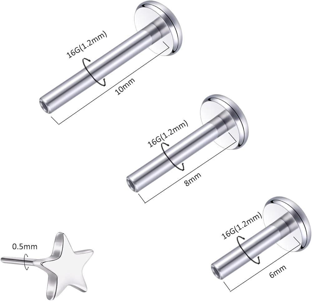 Size-18 Gague Labret Jewelry, Post Length: 1/4'',5/18'' and 3/8''. Star shape Top End Size: 3mm.