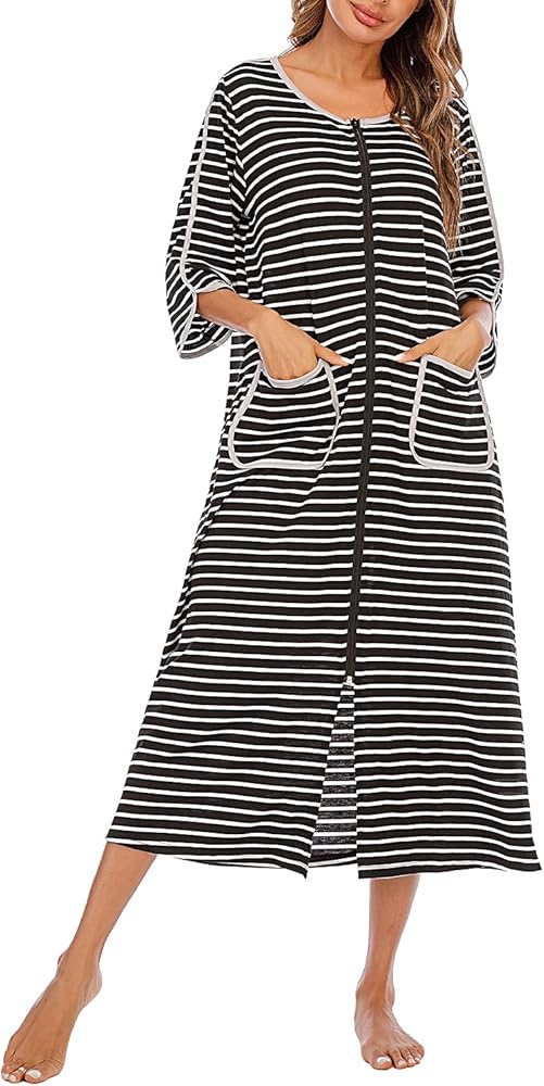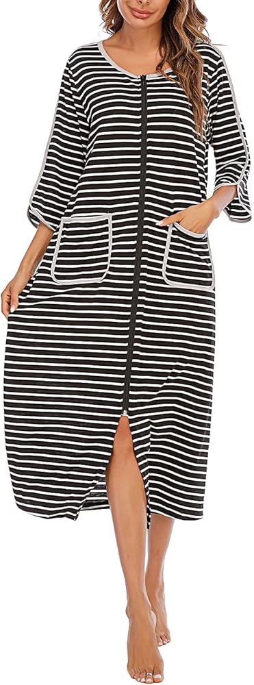 Suitable For Anybody: The zippered women's robe is easy to put on and take off, and fits almost all body shapes, which is suitable for nursing and maternity after surgery and labor. And it's also perfect for after shower, while makeup in the morning. The full-length nightgown is designed to be simple and stylish, but super soft and comfortable to wear.