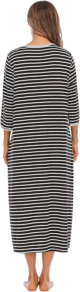 Convenient Design: The 3/4 length sleeves style loungewear making it easy for you to put on makeup, wash dishes, change your child's diaper, etc. suitable for all seasons! Two large pockets keep hands warm and store all of your essentials - smartphone, breast pads, key and so much more. The collar of this women's loungewear dress keeps you from being covered by the bulky fabric.