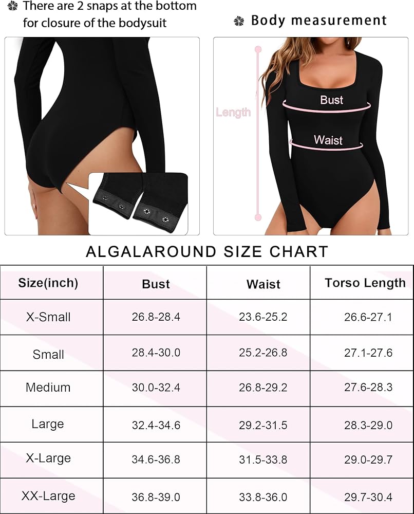 Features: the sexy bodysuit feature square neck, long sleeve, slim fitted, and 2 snap buttons butt closure at crotch. It is perfect for going out or everyday wear