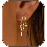 Stud Earrings for Women: Our triple stacking earrings are designed for single ear and can be worn as is. Our 14K gold plated split wrap earrings with three different lengths of pendant design make a stylish statement and are perfect for any occasion. These beautiful drop earrings are the perfect fashion accessory for any woman!