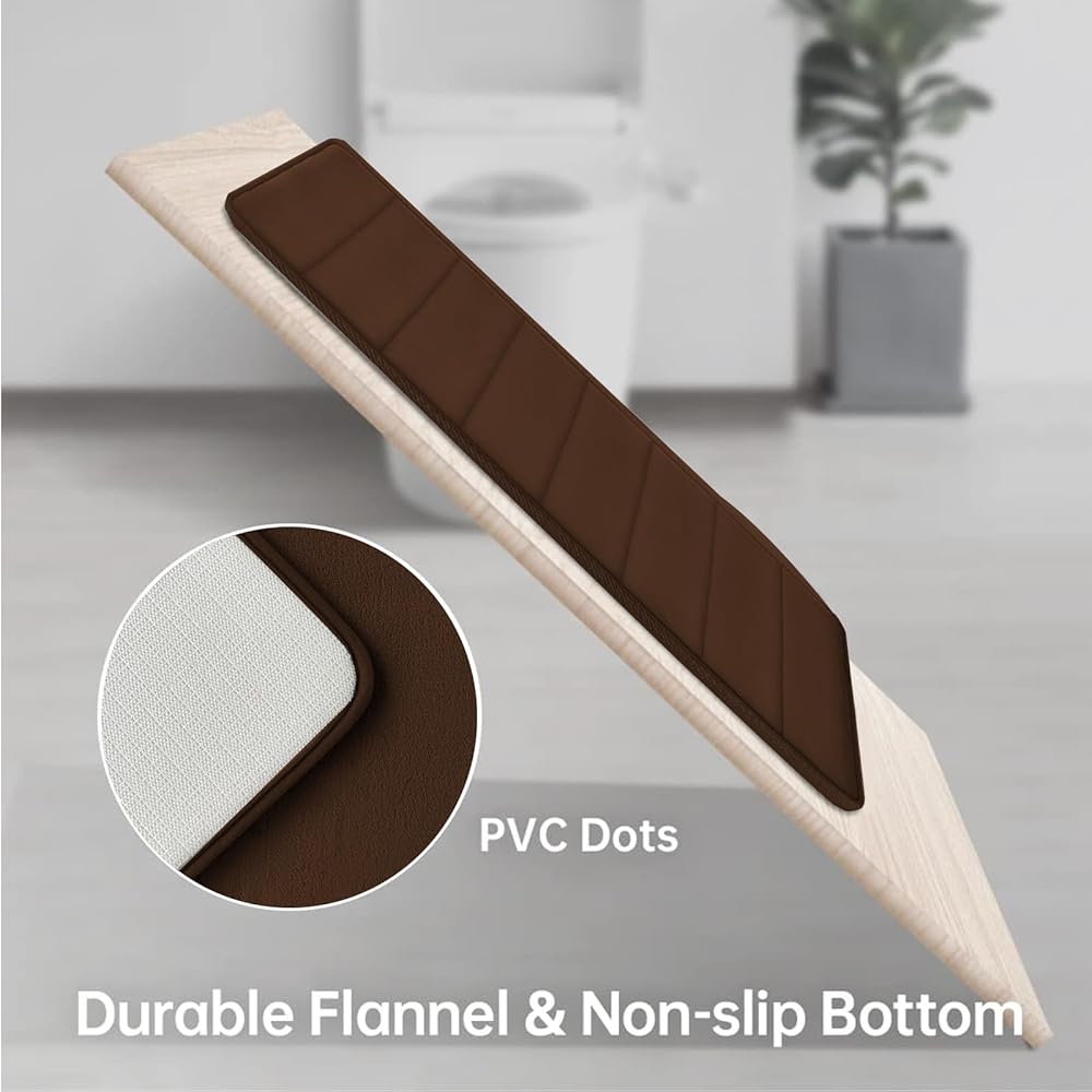 【Enhanced Non-slip Backing Bathroom Mats】:The upgraded PVC backing ensures exceptional anti-slip performance, securely fastening the bathroom mat to any tile or wooden floor. The non-slip design ensures safety for you and your family while using the bathroom. Please ensure the bottom surface stays dry as water on the backing may cause the mat to slip.