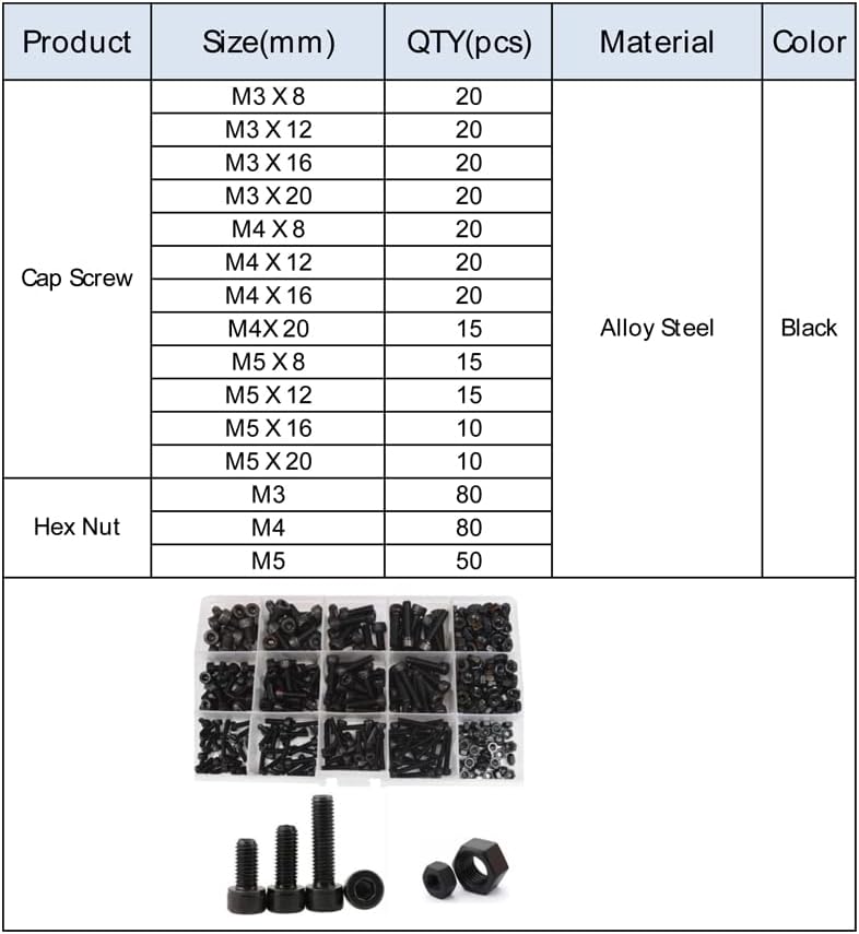 - M3 M4 M5 Socket Cap Bolt Set Metric Threaded Socket Cap Screw Machine Allen Nut Assortment Black Steel Alloy 12.9 Class