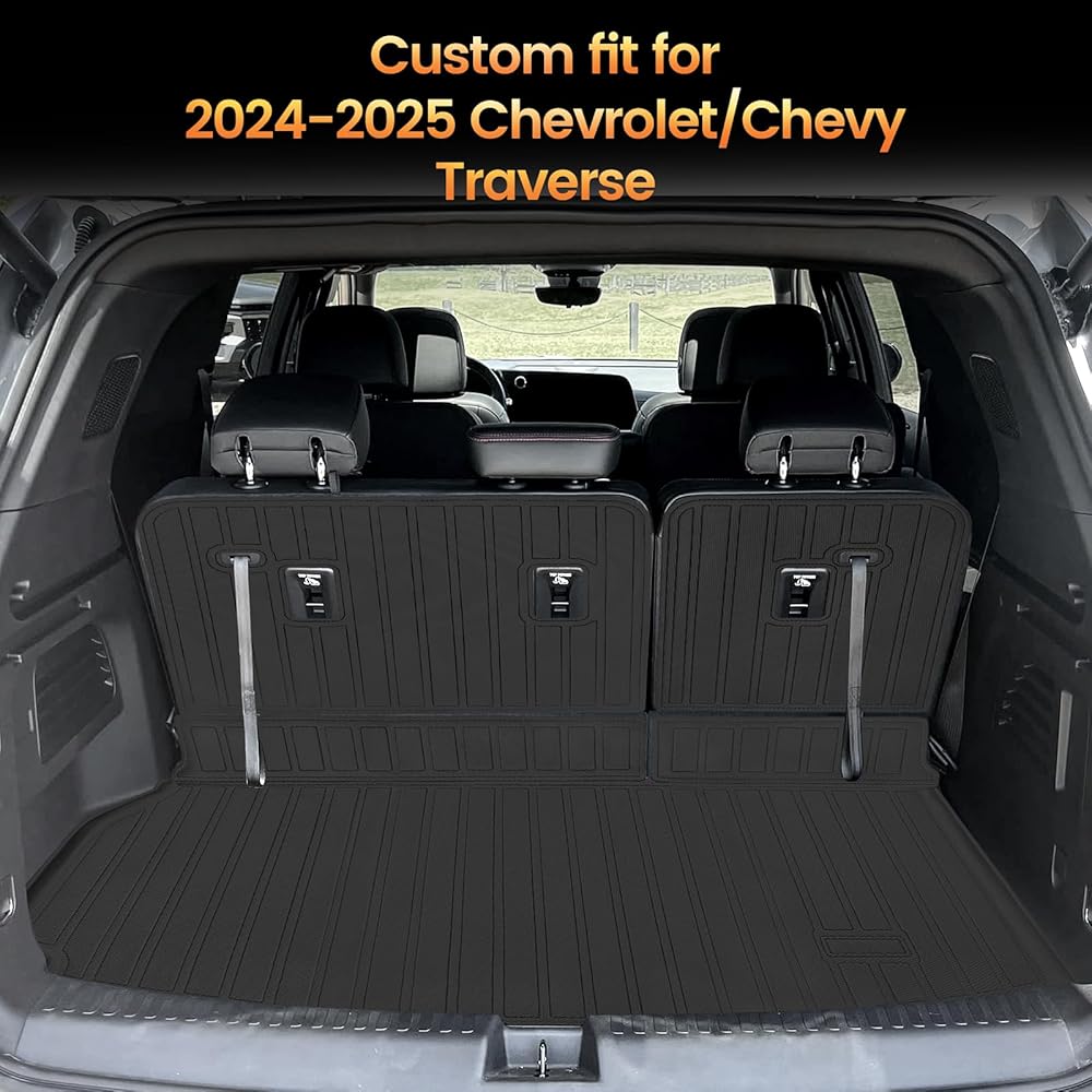 Sze Cargo Mat with Backrest Mats for 2024 2025 2026 Chevy Traverse (NOT 2024 Limited) & 2025 2026 Buick Enclave Trunk Mat TPE Seats Back Mat All Weather Cargo Liner for Chevy Traverse Accessories