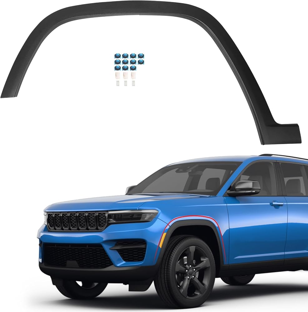 JOLONG Front Left Smooth Black Fender Flares Compatible with Jeep Grand Cherokee 2021 2022 2023 2024 2025. Made of high quality Plastic(ABS), it can be used to replace your damaged Wheel Arch Fender Flare. Color: Smooth Black. Package Included: 1 * Wheel Fender Flare (front left side). Replacement for OE Number: 6PZ93TZZAC. Easy to install and replace the broken smooth surface fender flare , no special tools are needed! Our warranty is 365 days, if you have any problem, you can contact us anytime, we will try our best to help you solve it.