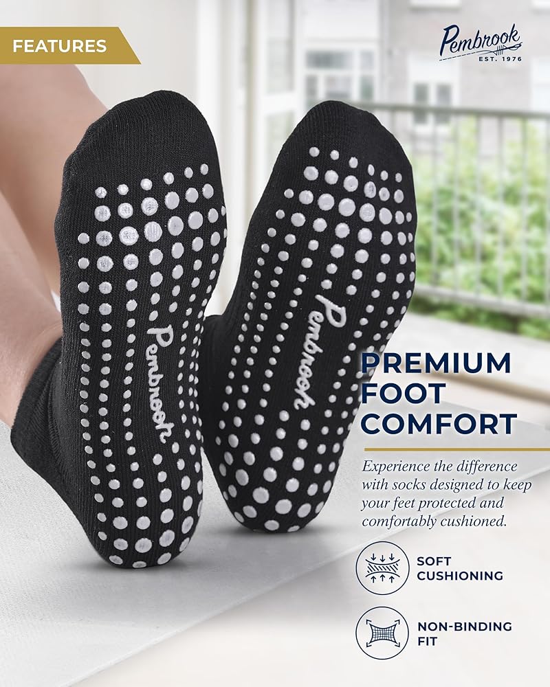 Superior Quality – These premium sticky socks are guaranteed to be 100% comfortable! Our loyal customers love the Pembrook nonslip socks and we're confident that they will find a home among your favorite foot gear. We have been in business since 1976 and we fully stand behind the quality of our products.