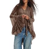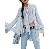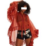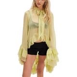 UAURORAO Women Ruffle Sheer Top Long Sleeve See Through Mesh Blouse Tops Oversized Flowy Chiffon Tunic Shirts