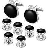 Easy to Use:These tuxedo studs are exquisitely crafted and easy to put on and take off, and they prevent the cuffs from fluttering in the breeze.This set includes 1 pair of cufflinks and 6 pieces of tuxedo studs buttons, featuring smooth lines that elevate the overall texture of your clothing, ensuring a seamless match with your shirt