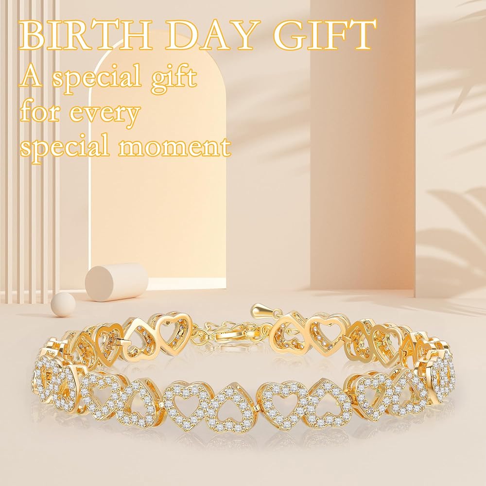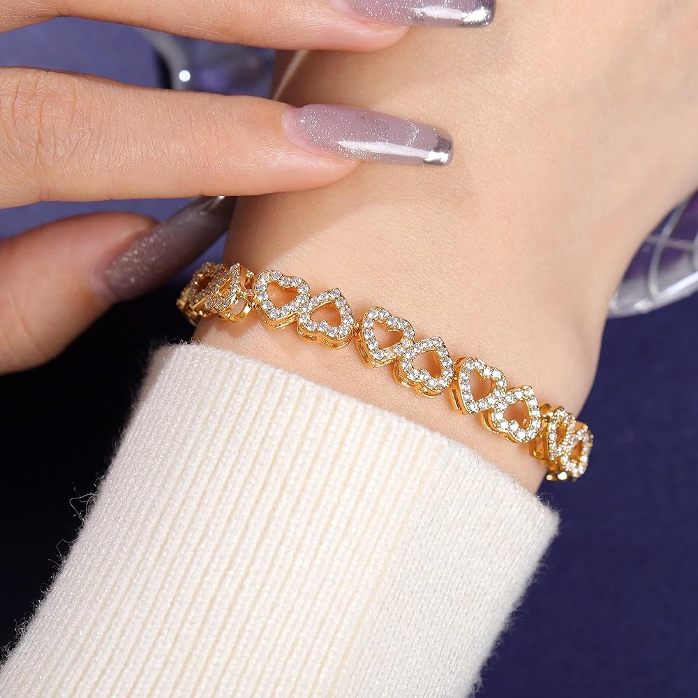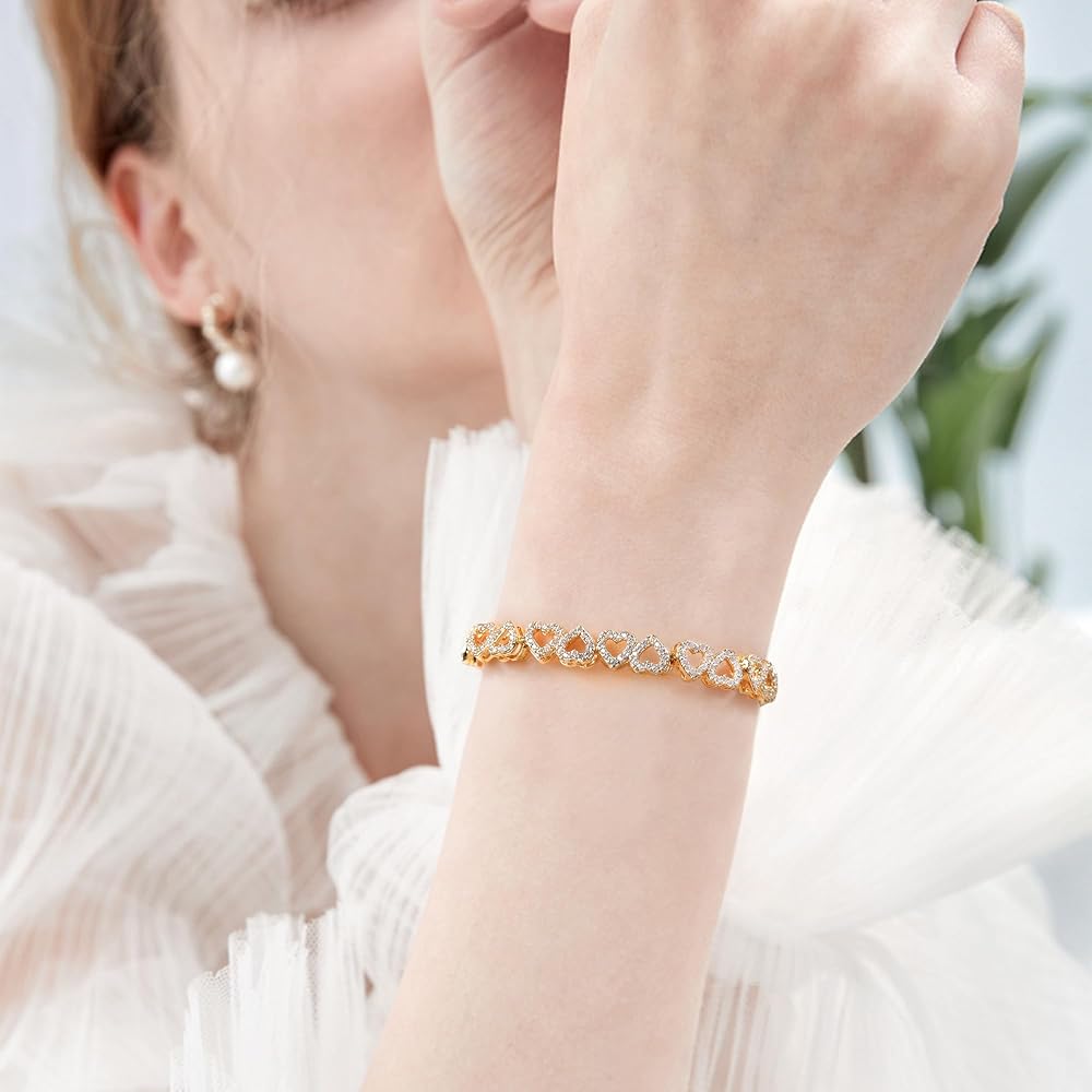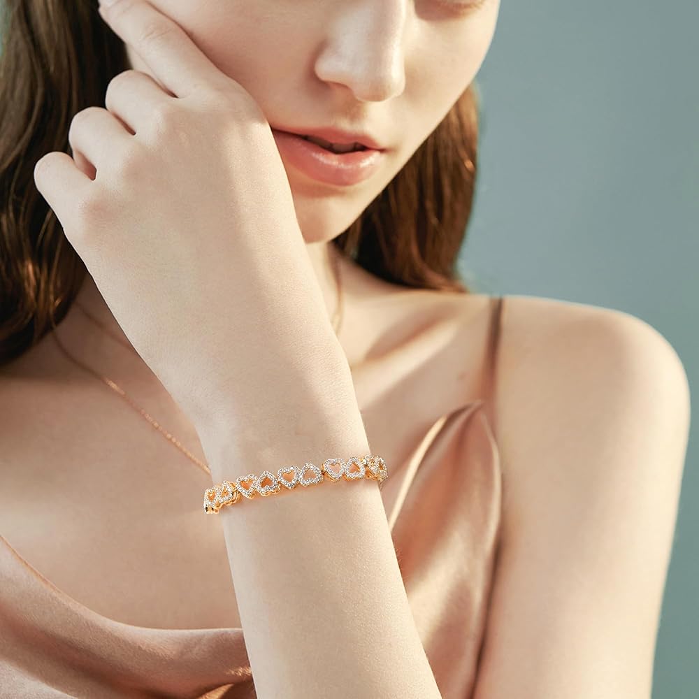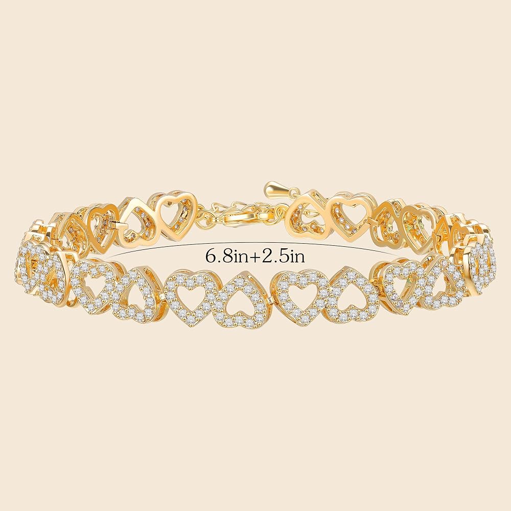 Heart Symbol Charm Link Bracelet for Women Cubic Zirconia Bangle Crystal Love Bracelet Jewelry Anniversary Jewelry Christmas Birthday Gifts for Women Wife Girlfriend Her