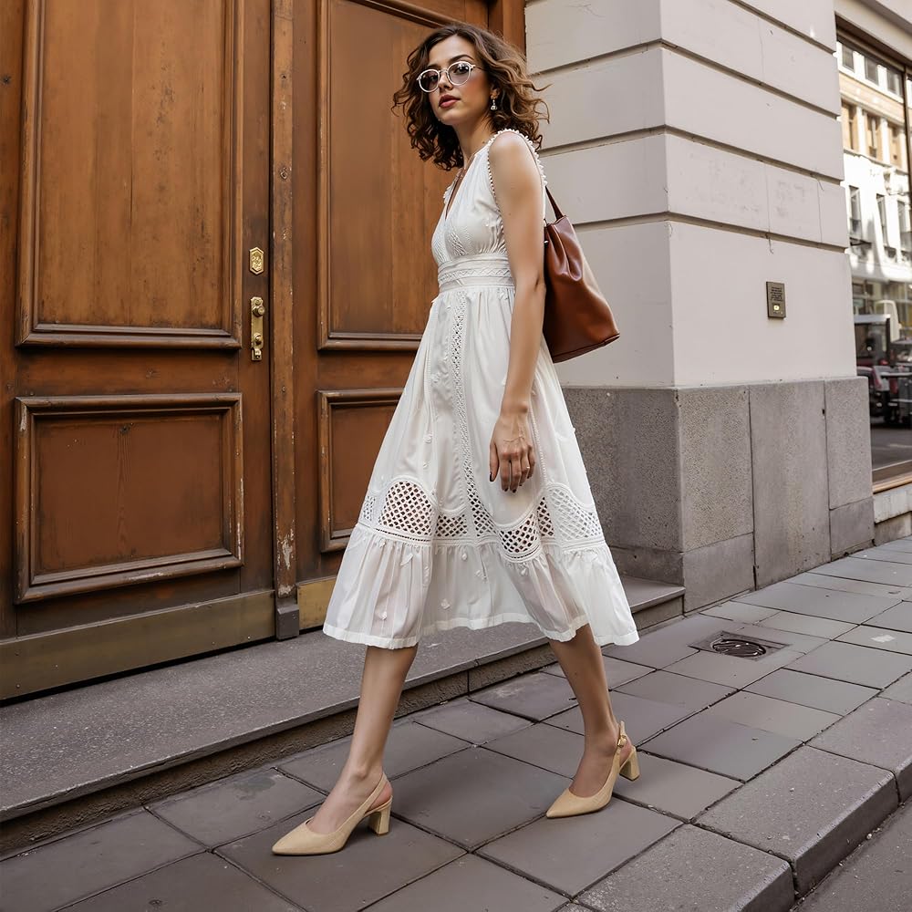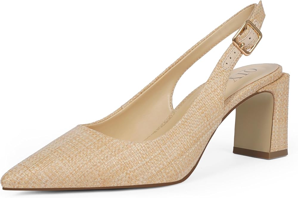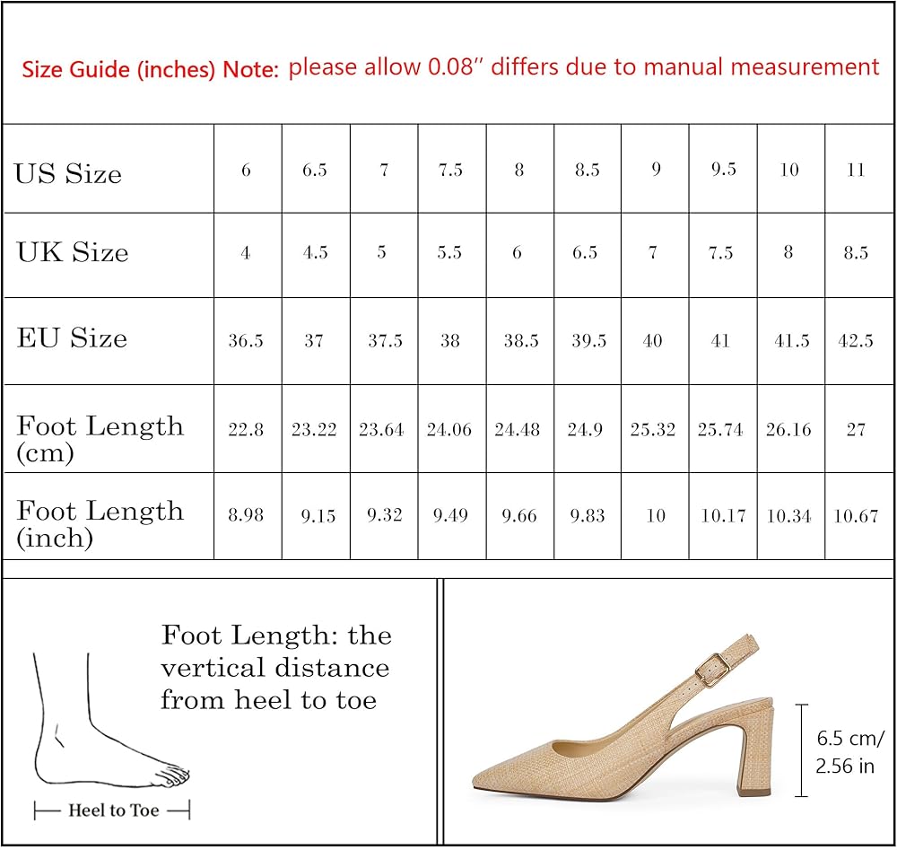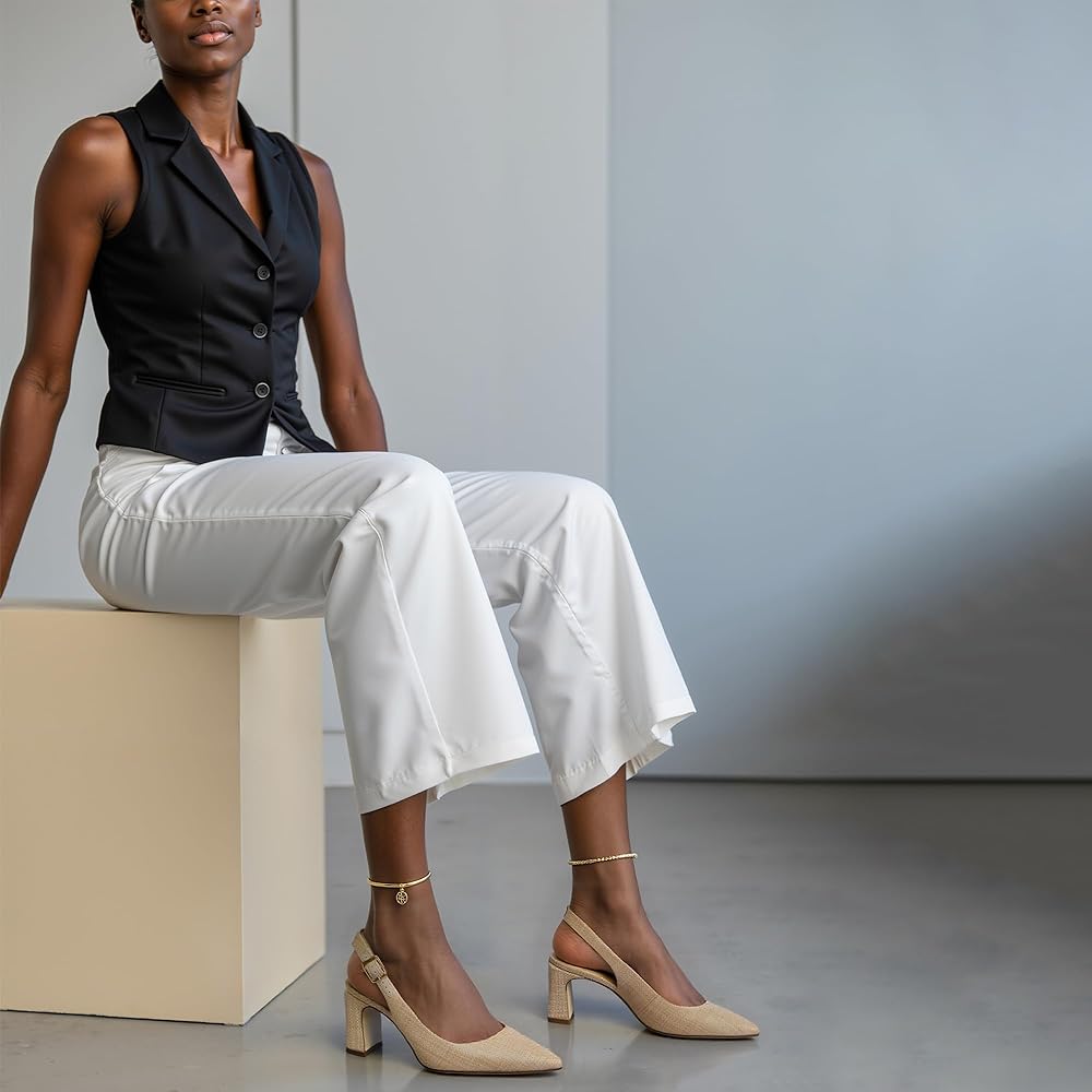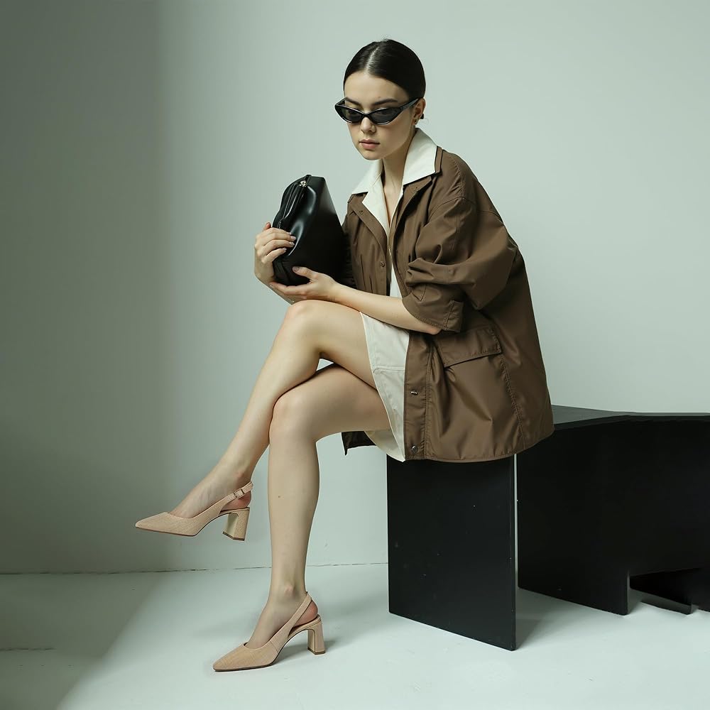 [Timeless Design]: This slingback heel boasts a classic design with a pointed toe, making it perfect for both professional settings and formal events.